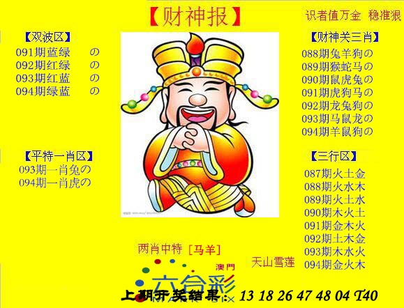 094期: 澳门六合彩彩圖信封【黄财神报】每期自动更新