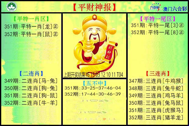 352期: 澳门六合彩彩圖信封【黄财神报】每期自动更新